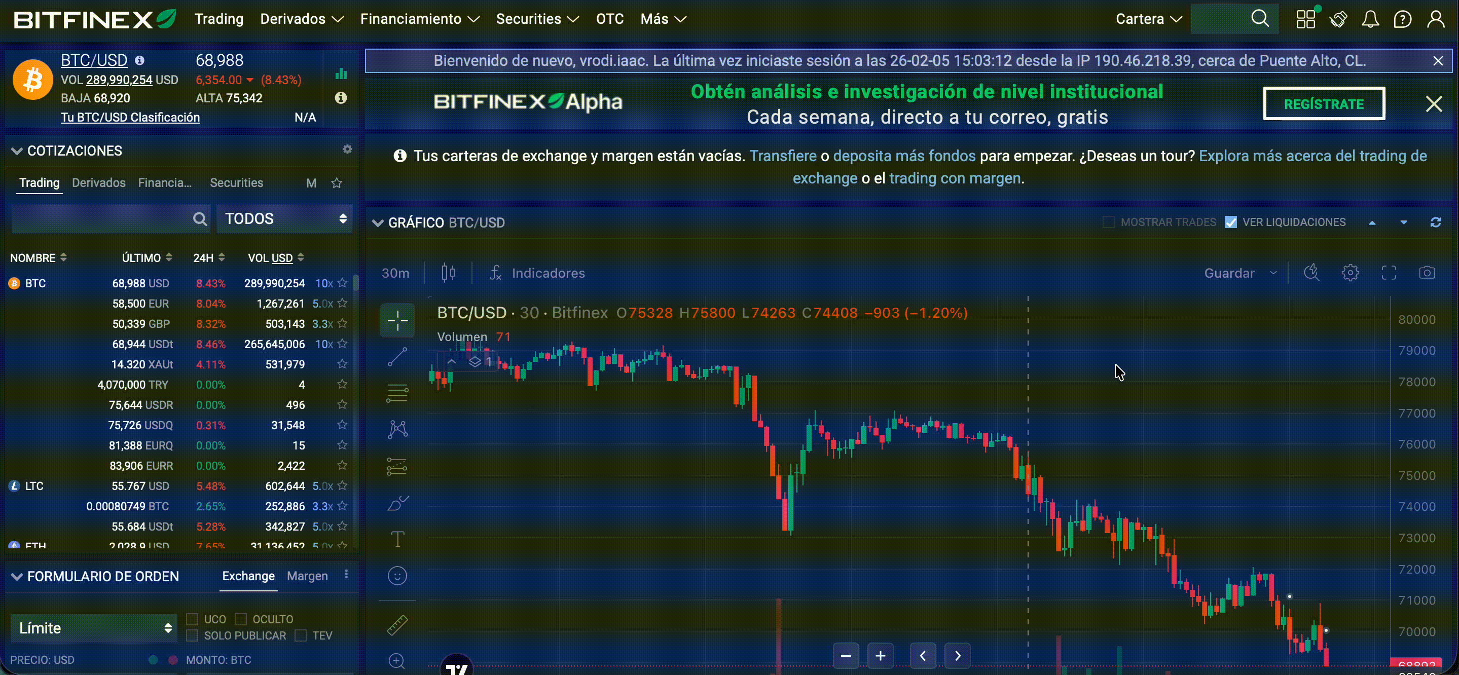 Ingresa a Bitfinex
