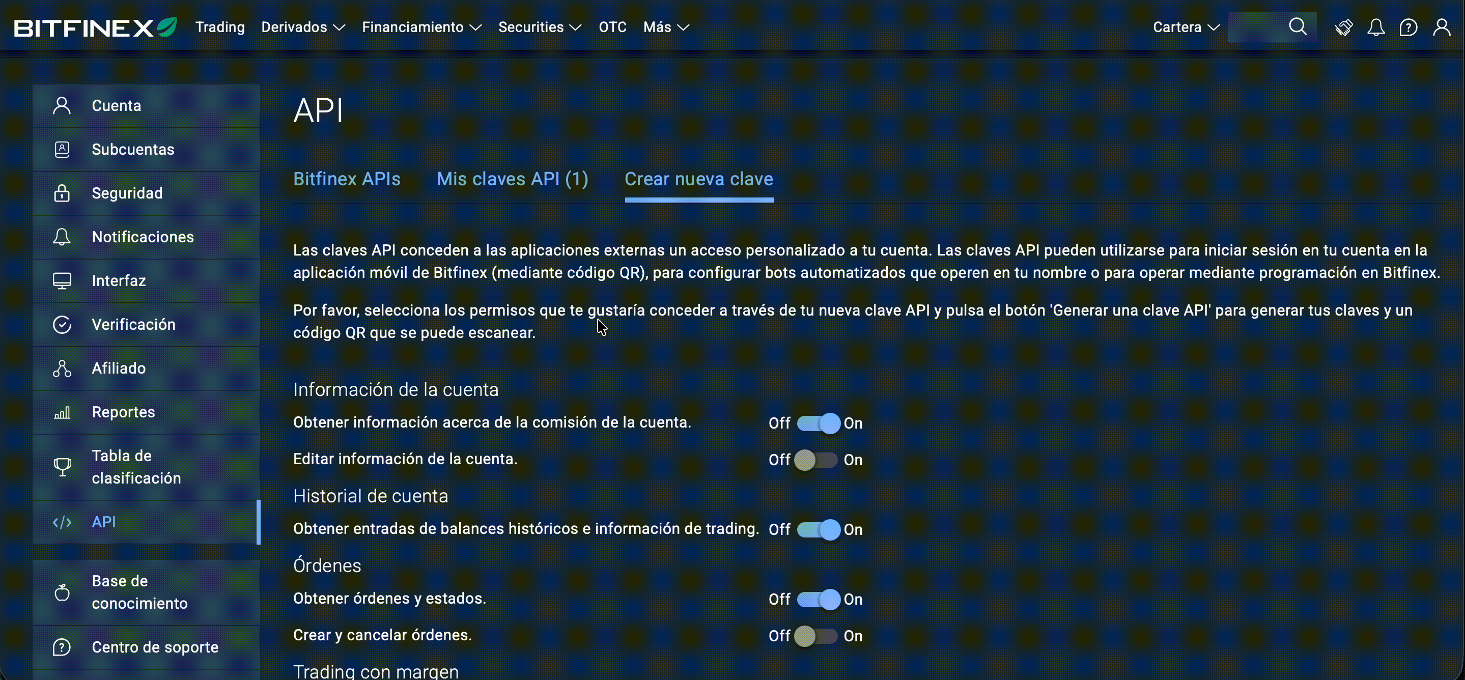 ¿Cómo conecto mi cuenta de Bitfinex?
